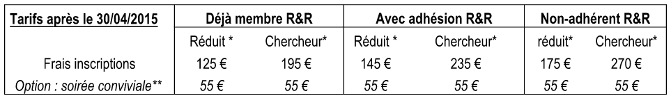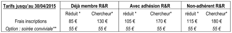 (*) ”chercheur” rate = fee applicable for all status except for “étudiant”: scholar-researcher, researcher, enterprise, administration.